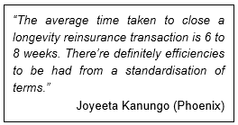 Commoditisation is based around insuring longevity trend risk and results in some components of risk being left with the risk cedant. Cedants may prefer to transfer all their risk, especially as current market prices are perceived as low. The capacity of risk takers has so far been sufficient for the risk cedants coming to market – only a small percentage of world-wide longevity-linked liabilities have transferred into global reinsurance regimes.